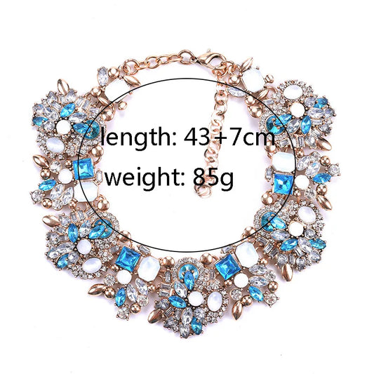 Handmade Necklace Artificial Jewellery Exaggerated Big Gem Crystal Rhinestone Choker Kundan Chunky Necklace for Women