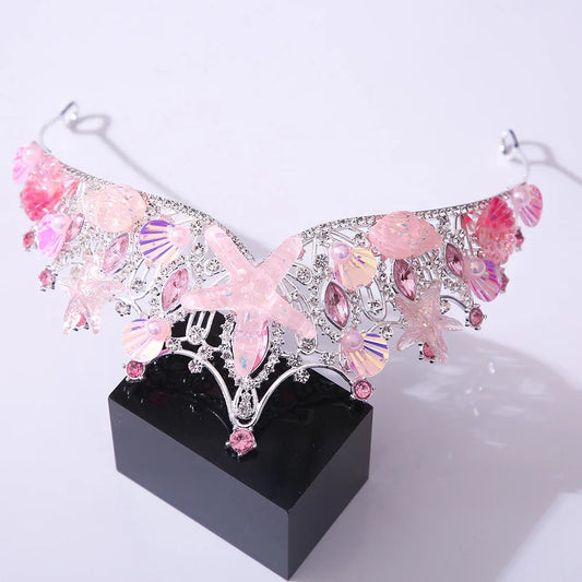 KMVEXO Mermaid Fish Crowns Ocean Style Costume Seashell Starfish Tiaras for Girls Fairy and Bridle Crown