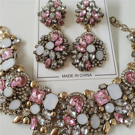 Crystal Rhinestones Necklace Earrings Bridal Jewelry Sets Big Choker Necklace