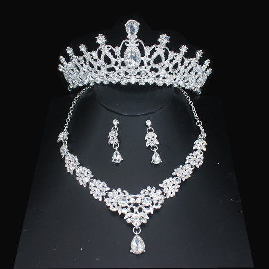 Crystal Wedding Bridal Jewelry Sets Women/Girl Gold Color Tiara/Crown Earrings Choker Necklace Bride Jewelry Set