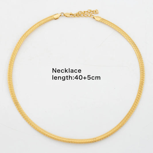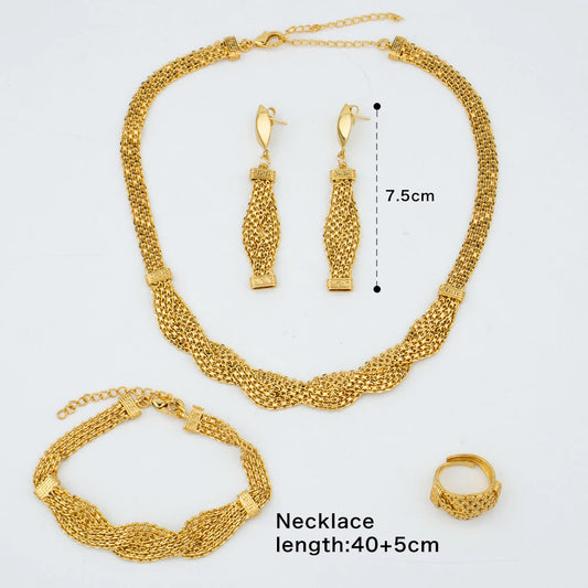 Golden Color Choker Necklace with Earrings and Bracelet Ring Jewelry Twist Design Jewelry