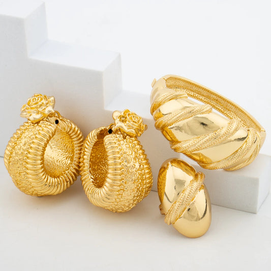 Golden Plated Dangle Earring and Bangle Ring Jewelry Set Bride Jewelry Set