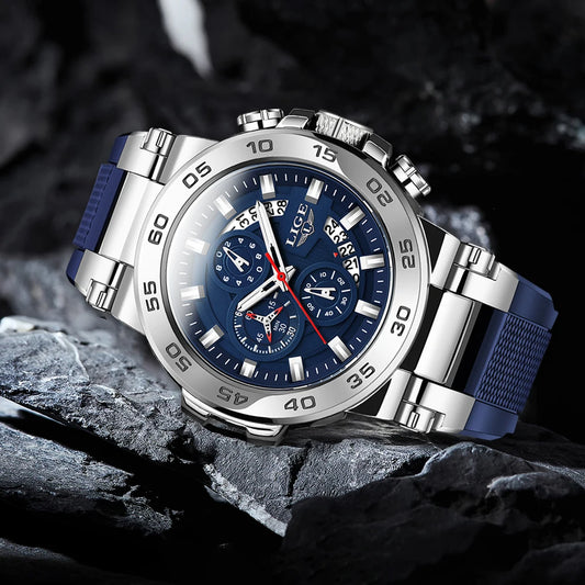 LIGE Men's Watches Top Luxury Brand Big Dial Waterproof Quartz Wristwatch Sport Chronograph Clock