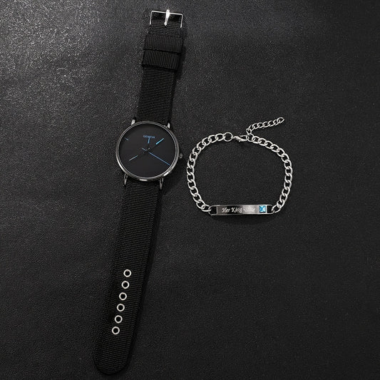 Men's Quartz Watch & 1pc Bracelet (2pcs/set), Minimalist , Suitable For Daily Use Or Gift