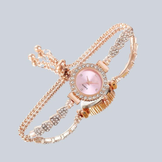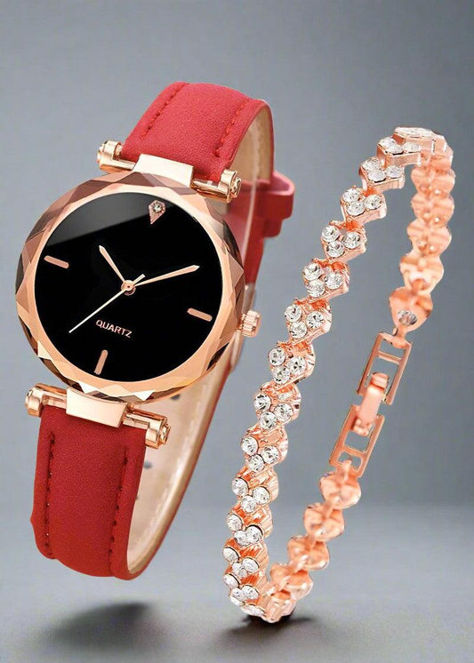 Quartz Watch with Leather Belt along with Bracelet as Gift Set