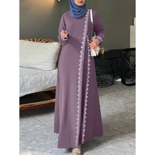 Abaya Muslim Fashion Long Sleeve O Neck Abaya Women Elegant Lace Patchwork Long Dresses